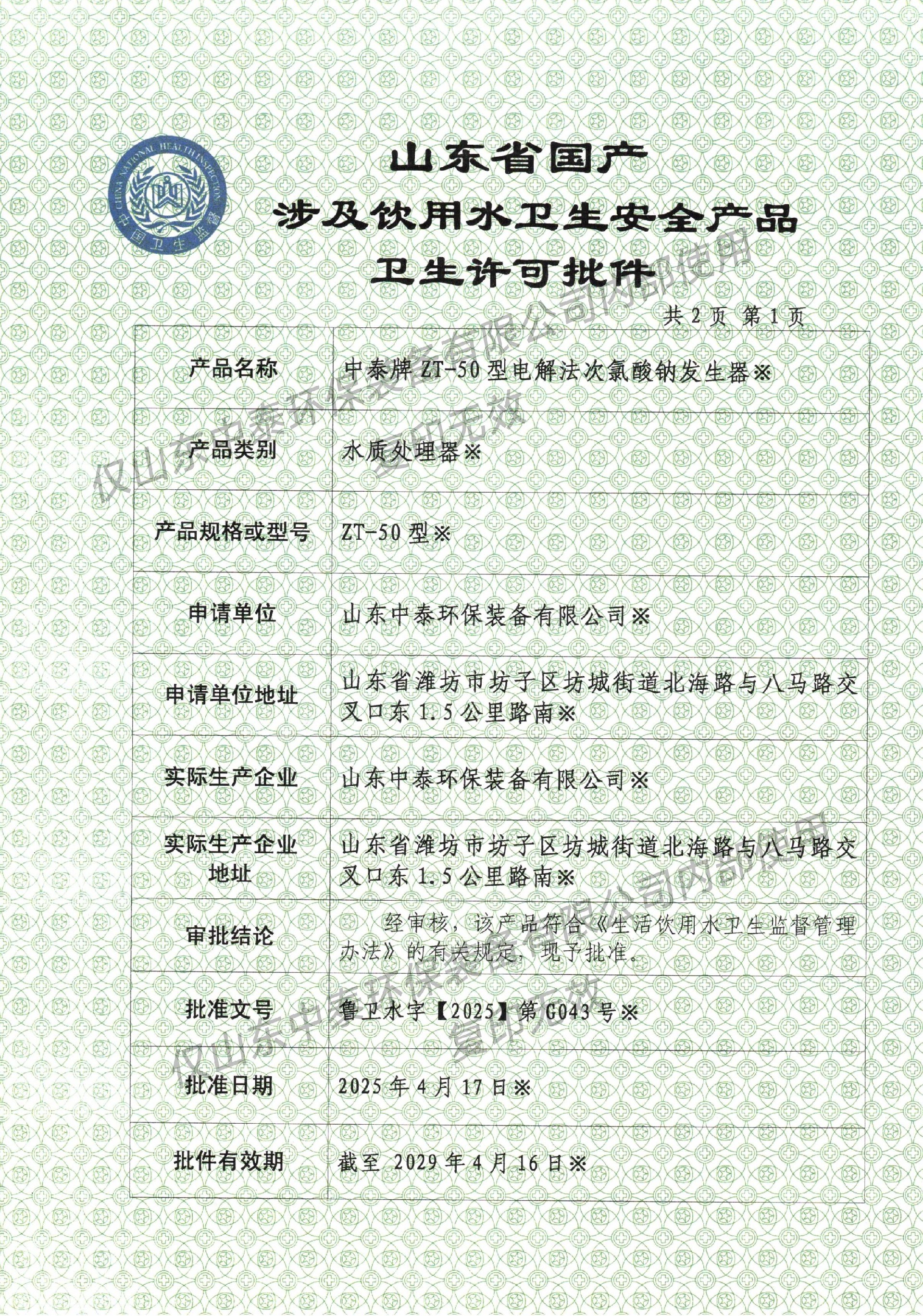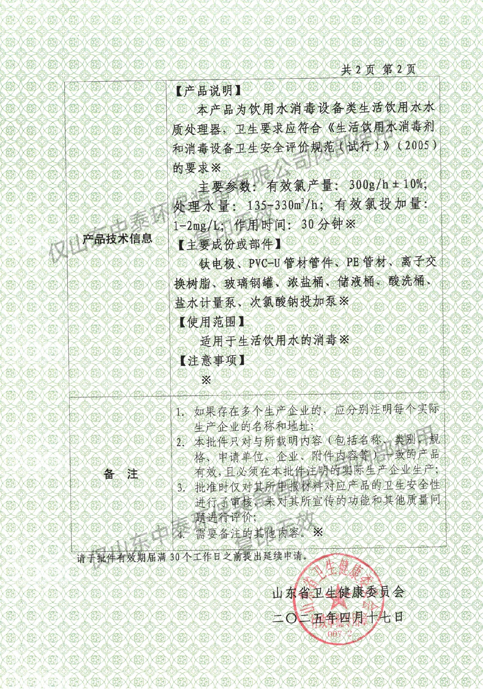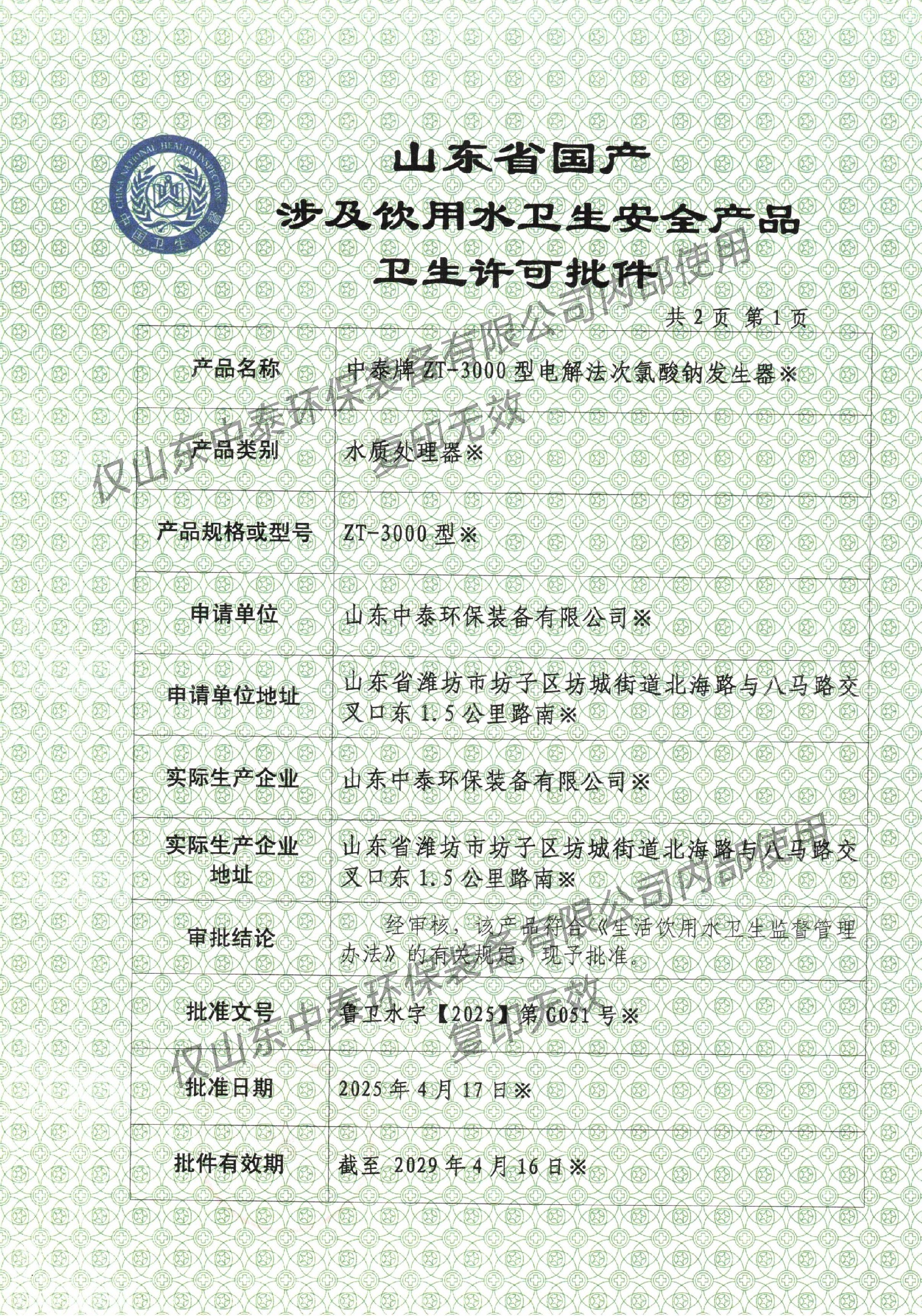 飲用水衛(wèi)生安全產(chǎn)品衛(wèi)生許可批件